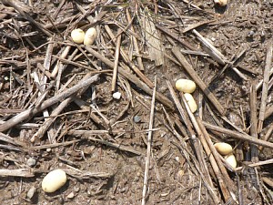 右の写真は、既にまいておいた我が家のくず大豆です。 |