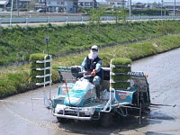 田植え機に苗や肥料を積み込んだり、一緒に田植え機に乗って振動を感じ、