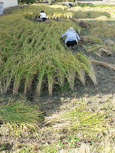 稲が刈られて、束が作られていきます!