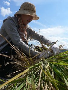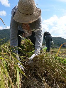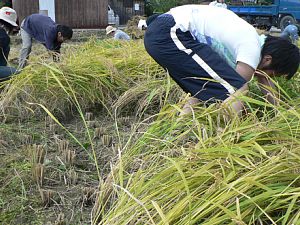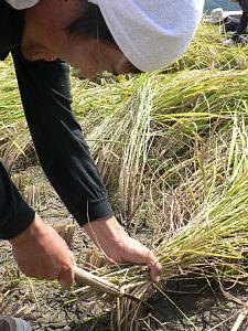 鎌の使い方とか、稲の持ち方を教えてもらって始まりました。