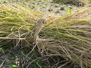 束にして、このわらの紐で縛ります。