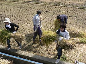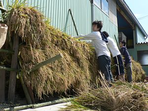 天日干しにするため稲を作業場に運びます!