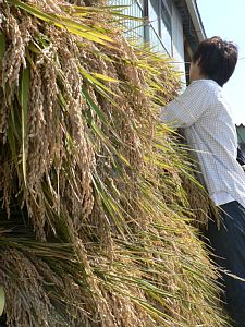 1週間ほど乾かした後、脱穀→籾摺りします。