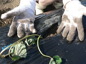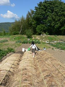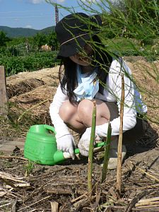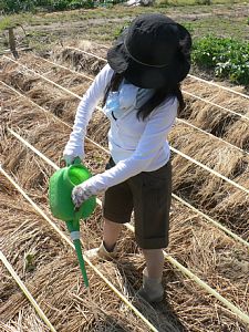 ぼくが既に植えておいたさつまいもにも水やりを。