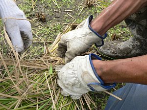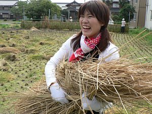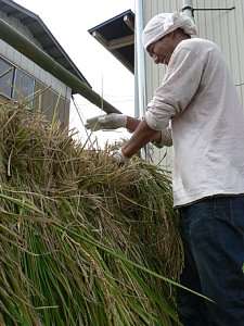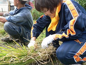 次は、刈った稲をわらで束ねる作業に移ります◎