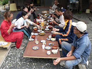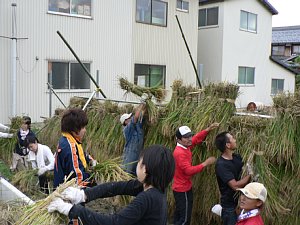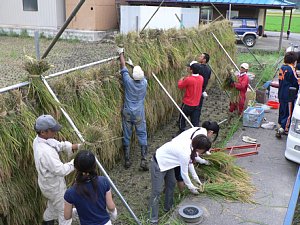 夕方5時を過ぎ、みんなで急ピッチではさがけします!! |