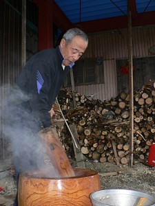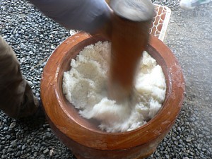 まずは、ゆっくりじっくりもち米の粒を押しつぶします!