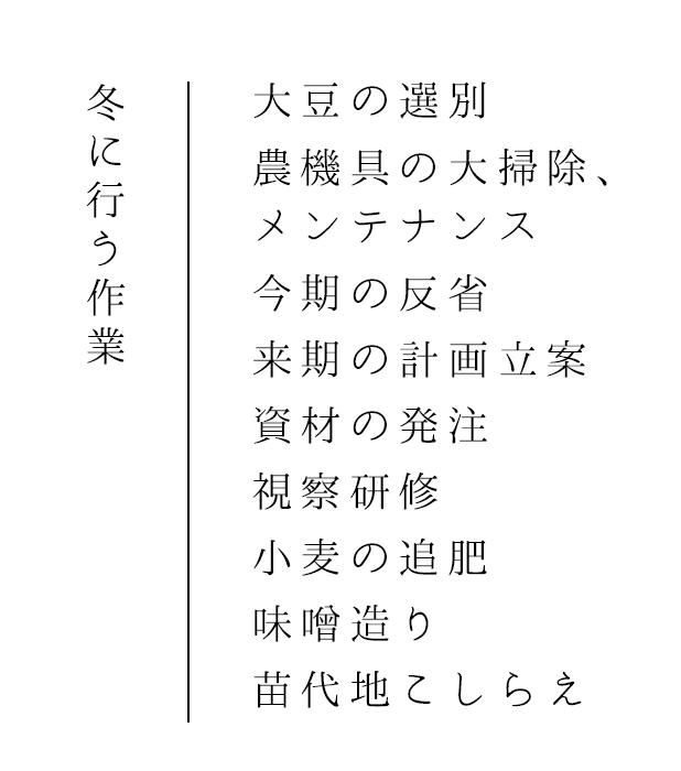 何より最重要な次年度の米作りの計画立案、お米の精米など、