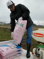 田んぼに均等に散布します。